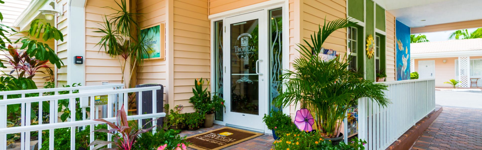 Tropical Beach Resorts is a wonderful place. The staff is very friendly and helpful. The grounds are beautifully landscaped. The white powdery beach is just a few minutes stroll. Sunsets incredible. Easy walking distance to shops and restaurants. They have complementary sand chairs, towels, dvds, coffee, lemonade and refreshments. We had a full kitchen and our room was spotless could not ask for more!